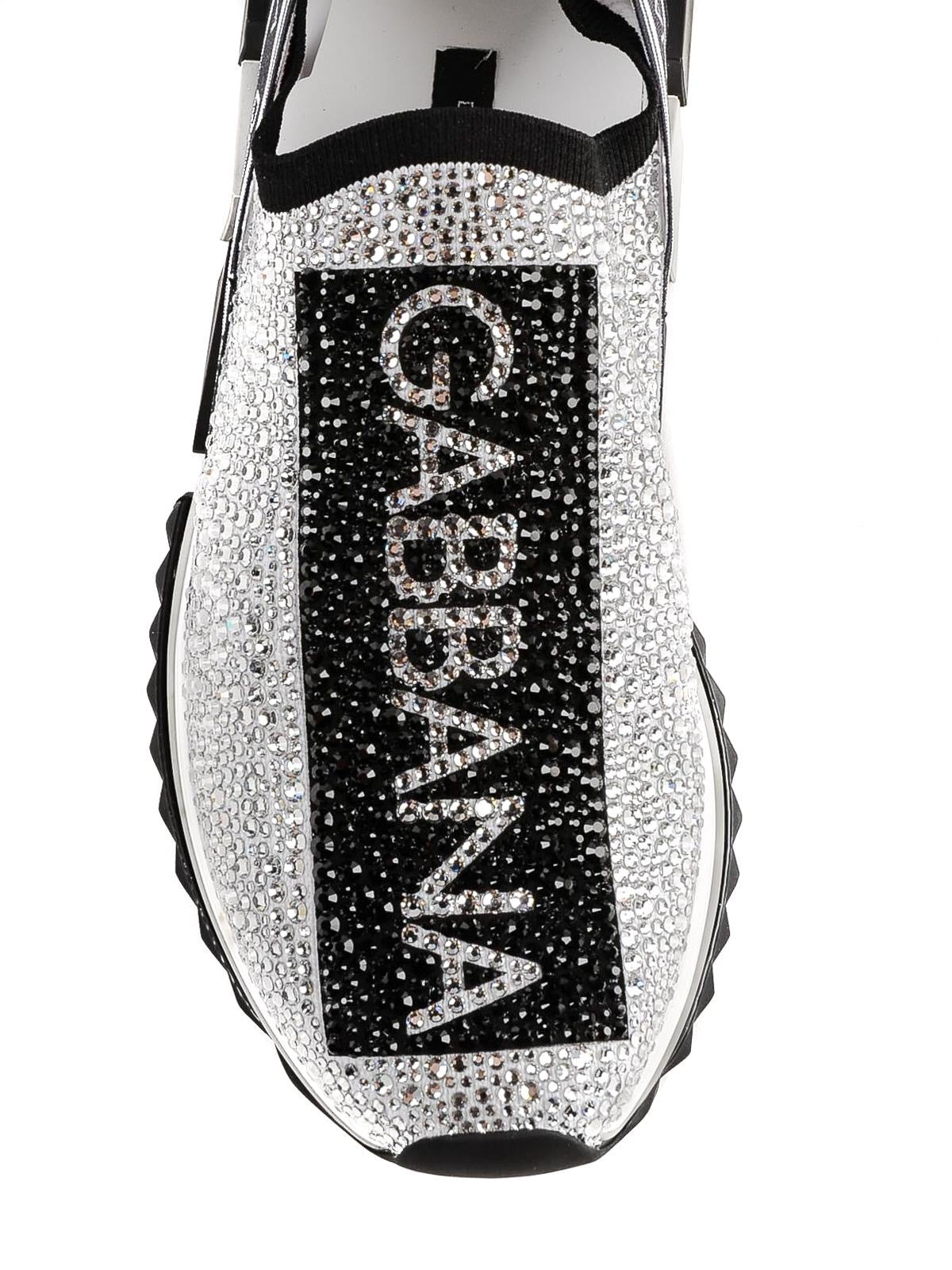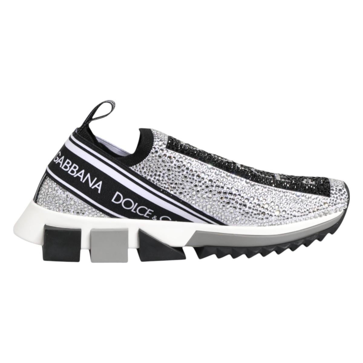 Where to Wear: Silver and black crystal-embellished slip-on sneakers with bold “”D&G” logo panels. Features full sequin coverage, elasticated back panel, branded pull tab, and chunky rubber sole. Ideal for luxury streetwear, fashion-forward casual outings, or adding sparkle to everyday looks.