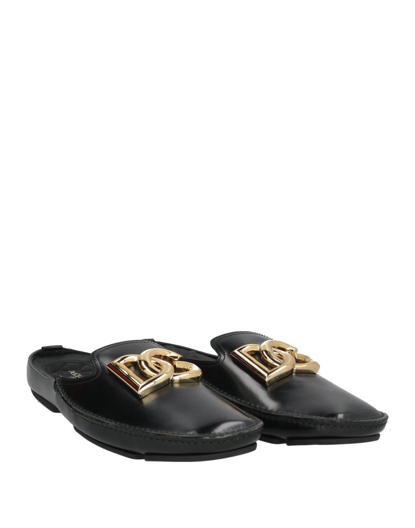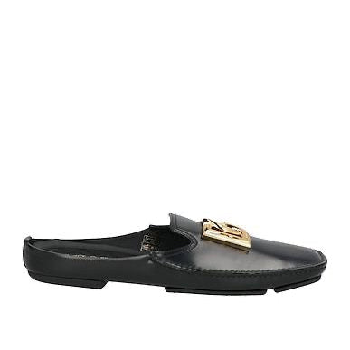 Where to Wear: Black leather slides featuring oversized gold-tone DG logo hardware at vamp. Slip-on design with cushioned footbed and flat sole for effortless everyday comfort. Ideal for casual outings, lounging at home, poolside relaxation, running errands, or adding a luxe touch to off-duty weekend looks.
